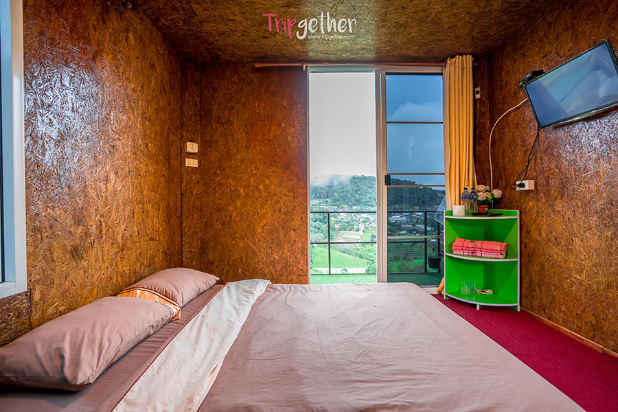 ไม่ว่าจะเป็นโทรทัศน์ ที่นอนนุ่มๆ ชุดอุปกรณ์อาบน้ำ สบู่ ยาสระผม และผ้าขนหนูที่ไม่ต้องหอบหิ้วกันมาจากบ้าน นอกจากนี้บ้านกล่องแต่ละหลังยังมีระเบียงส่วนตัวให้นั่งเล่น ชมวิวกันแบบเพลินๆ