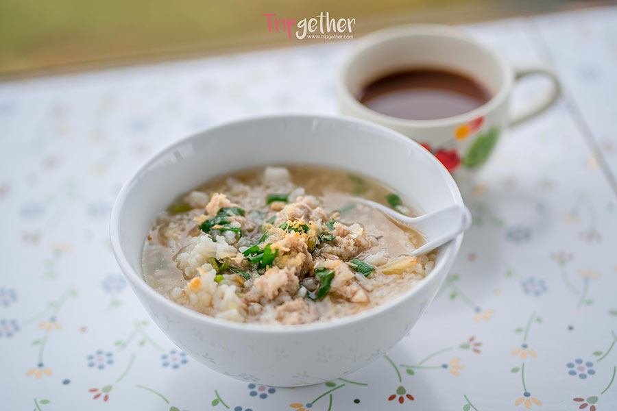 ส่วนอาหารเช้าของที่นี่จะเสิร์ฟเป็นข้าวต้มหมู ข้าวต้มไก่ และยังมีกาแฟ โอวัลตินฟรี หรือถ้าใครอยากจัดเต็มก็มีอาหารตามสั่งให้อร่อยกันต่อ ซึ่งเมนูอาหารตามสั่งจะมีค่าใช้จ่ายเพิ่ม อย่างข้าวผัดกระเพรา ข้าวไข่เจียว และเมนูอื่นๆ อีกหลายรายการ