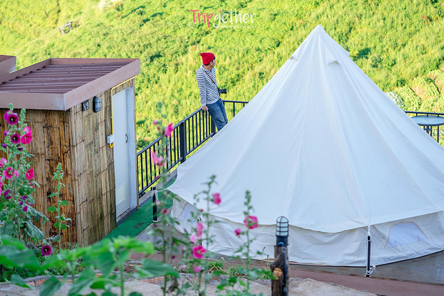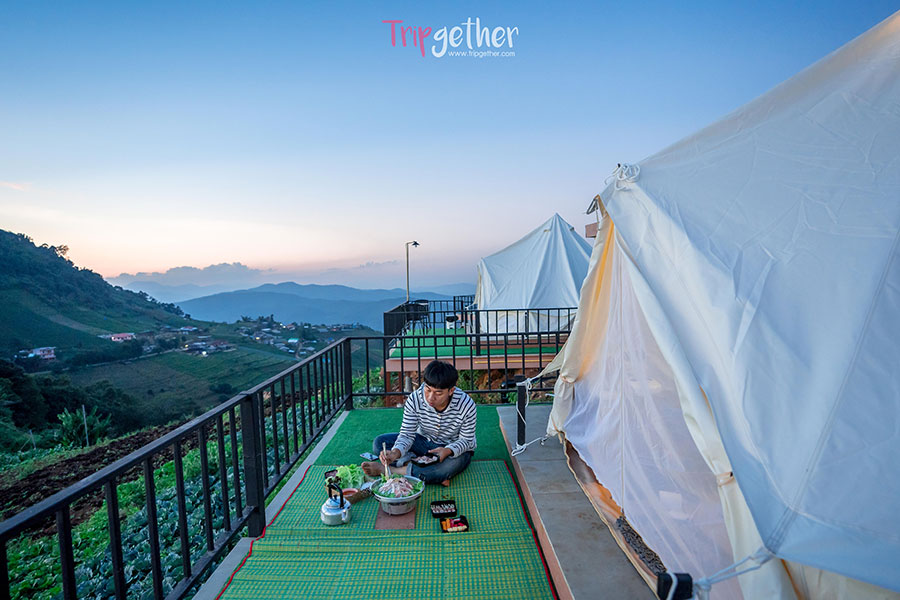 นอกจากบ้านพักวิวดี ดีไซน์เยี่ยมแล้ว ที่นี่ยังมีเต็นท์ VIP ทรงกระโจมสีขาวสุดชิคเปิดให้บริการอีกด้วย