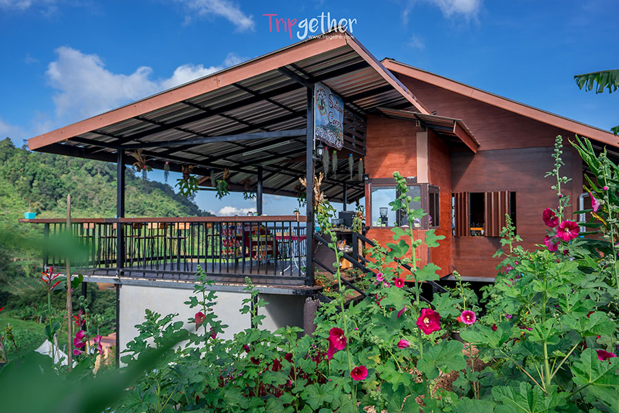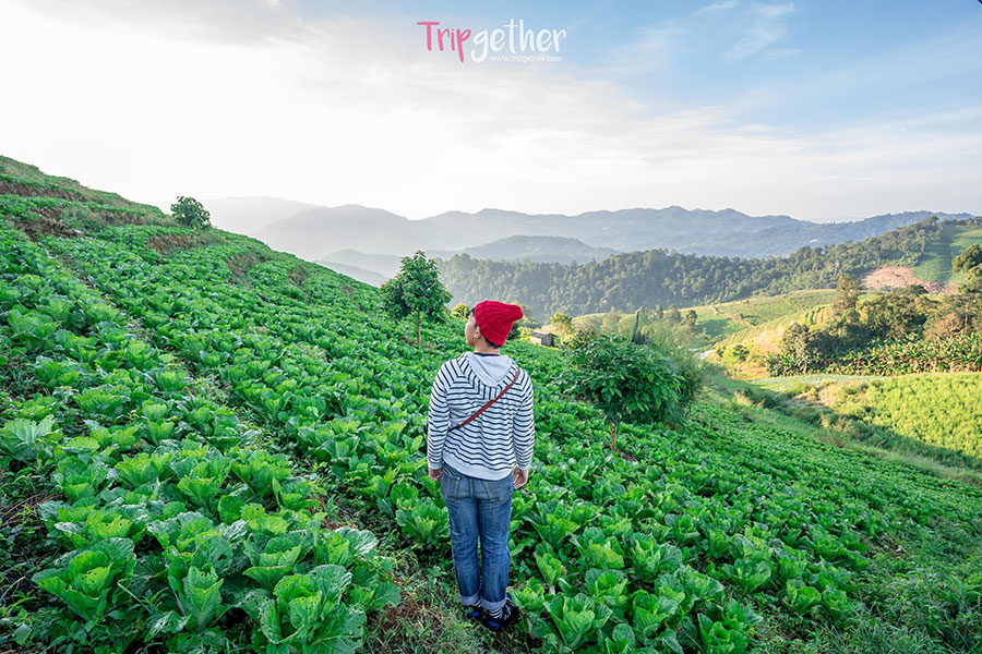นอกจากนี้ภายในพื้นที่ของโฮมสเตย์ยังมีโซนของไร่ผักขั้นบันได้ให้ได้เดินเล่นถ่ายรูปกันด้วย