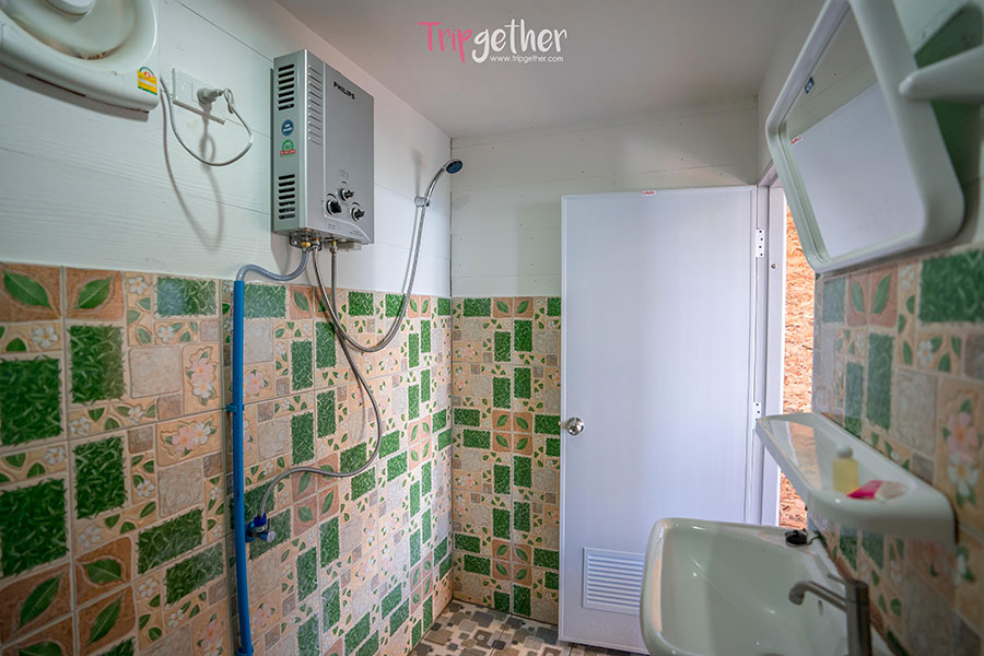 ในส่วนของห้องน้ำ ก็เป็นห้องน้ำส่วนตัวที่ตั้งอยู่ติดกับเต็นท์