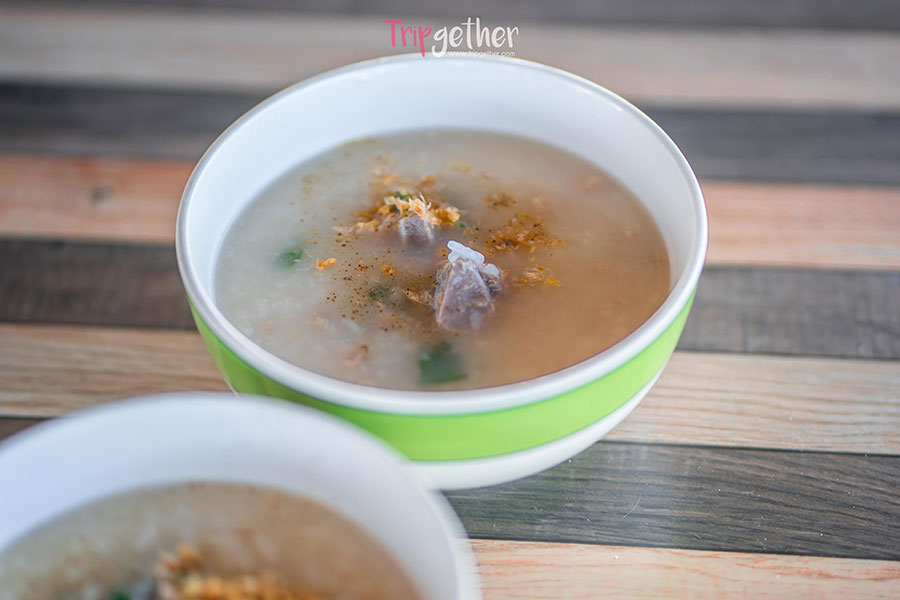ส่วนเมนูอาหารเช้าที่นี่จะเสิร์ฟเป็นข้าวต้มหมูแบบบุฟเฟ่ต์ ให้ตักกินได้แบบอิ่มๆ เปิดตั้งแต่ 7.30-9.00 น.
