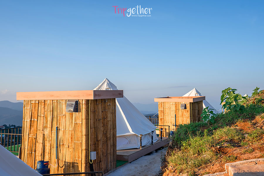 นอกจากเต็นท์ VIP ก็ยังมีเต็นท์เล็กสไตล์อิงแอบใกล้ชิดธรรมชาติ ให้คุณได้เลือกพักผ่อนเช่นกัน ภายในเต็นท์มีชุดเครื่องนอนอย่างดีเตรียมไว้ให้ ส่วนห้องน้ำจะเป็นห้องน้ำรวม
