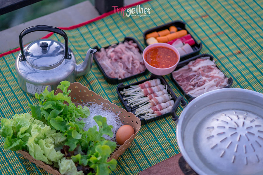 และในช่วงเย็นพลาดไม่ได้กับเมนูยอดฮิต!! อย่างเซ็ตหมูกระทะในราคา 450 บาท ที่สามารถกินกันได้ตั้งแต่ 2-3 คน