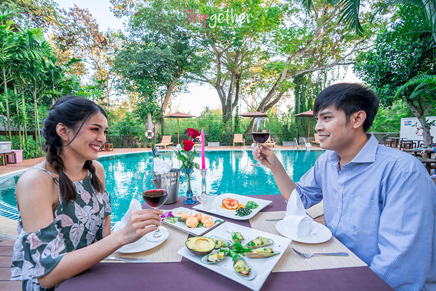 สำหรับอาหารเย็นทางรีสอร์ทมี ห้องอาหารเชียงคำ ที่มีทั้งเมนูอาหารแบบไทยและเมนูอาหารตะวันตก และยังสามารถเสิร์ฟได้ถึงโต๊ะริมสระว่ายน้ำให้นั่งกินท่ามกลางธรรมชาติ