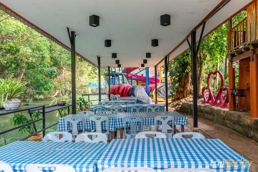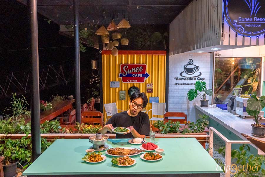 ที่ชอบมากอีกอย่างของ สุณี รีสอร์ท คือการจัดพื้นที่ได้ดีสุดๆ เพราะที่พักแต่ละโซนจะมีจุดรับประทานอาหารของตัวเองอยู่ใกล้ๆ เดินไม่ไกล โดยทุกจุดจะตั้งอยู่ ริมแม่น้ำเพชรบุรี เปิดโล่งแบบโอเพ่นแอร์ รับลมธรรมชาติเต็มๆ นั่งกินข้าวไป ฟังเสียงน้ำไหลไป บรรยากาศสบายมาก