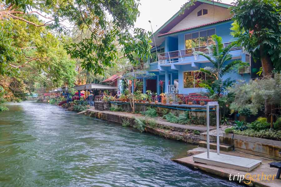 ทริปเก็ทเตอร์ขอเริ่มต้นพาทัวร์ที่ โซนบ้านพักสไตล์โรงแรม อย่าง บ้านสายชล อาคารปูน 2 ชั้นหลังใหญ่ สีฟ้าสบายตา ตั้งอยู่เลียบแม่น้ำเพชรบุรี ภายในห้องตกแต่งเรียบง่าย สะอาด น่านอน มาพร้อมสิ่งอำนวยความสะดกครบเลย ทั้งเครื่องปรับอากาศ โทรทัศน์ ช่องเคเบิล น้ำดื่ม ผ้าขนหนู สบู่ และยาสระผม บรรยากาศชิลล์ๆ เป็นความสบายที่อยู่แล้วรู้สึกผ่อนคลายจริงๆ ไฮไลท์คือระเบียงยาวด้านหน้า ที่สามารถออกมานั่งมองน้ำไหล ดูแสงแดดสะท้อนผิวน้ำ ปล่อยใจจอยๆ