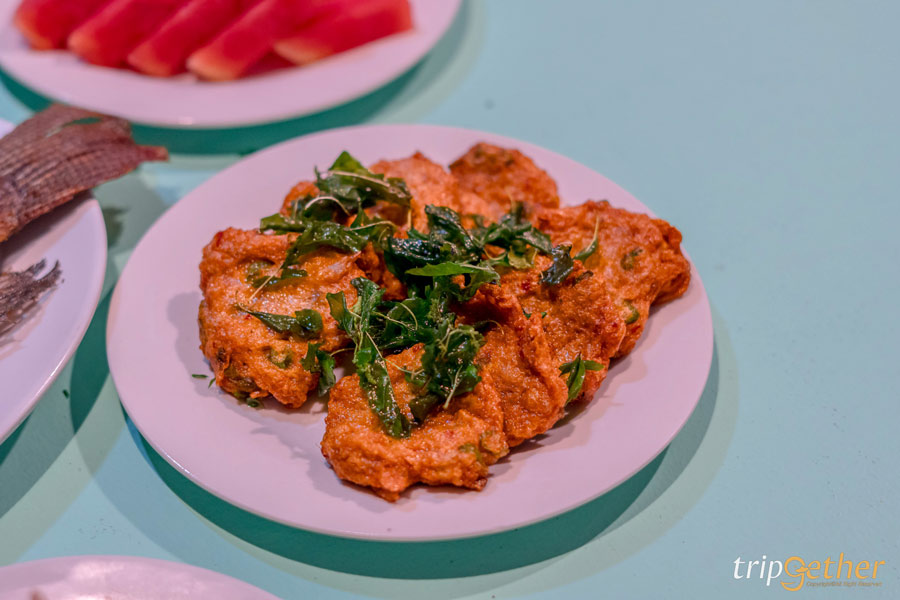 และเมนูที่พลาดไม่ได้คือ ทอดมันปลากราย เนื้อแน่น หนึบ เด้งสู้ฟัน รสชาติกลมกล่อม บอกเยว่าเป็นมื้อเย็นที่กินไป คุยไป เสียงหัวเราะดังไปพร้อมกับเสียงน้ำ เป็นบรรยากาศที่อบอุ่นมาก
