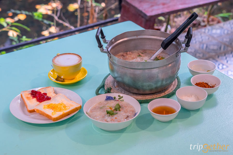 ส่วนอาหารเช้าของที่นี่เป็น ข้าวต้มหมูหม้อใหญ่ รสชาติกลมกล่อม สบายท้อง เหมือนกินฝีมือแม่ อิ่มท้องแบบสบายๆ พร้อมเริ่มวันใหม่