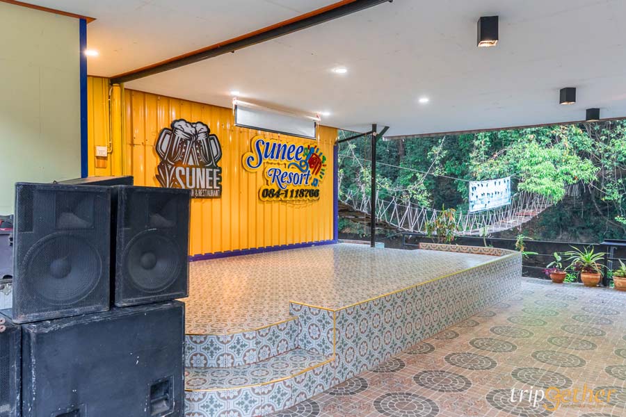 สุณี รีสอร์ท (Sunee Resort) ที่พักแก่งกระจาน ริมน้ำ บรรยากาศสุดชิลล์ โอบล้อมด้วยความเขียวชอุ่มของต้นไม้ใหญ่กับแม่น้ำเพชรบุรีที่ไหลเอื่อยอยู่ตรงหน้า ทำให้ความเหนื่อยจากการเดินทางค่อยๆ คลายลง ที่นี่เป็นที่พักขนาดใหญ่ รองรับผู้เข้าพักได้มากกว่า 100 คน เหมาะทั้งการมาเที่ยวเป็นแก๊งค์ใหญ่ กลุ่มเพื่อนสนิท ครอบครัว หรือแม้แต่ทริปเอาท์ติ้งขององค์กรก็ดีงามสุด!