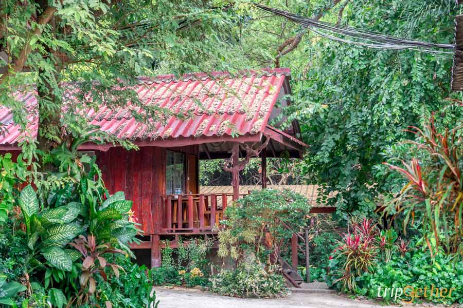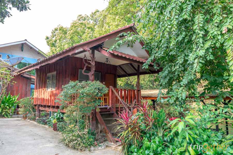 ถัดมาคือ โซนบ้านพักสไตล์บ้านไม้ ที่กระจายตัวอยู่ตามจุดต่างๆ ของรีสอร์ท บ้านไม้เก่าที่ถูกดูแลอย่างดี ให้ฟีลคลาสสิก อบอุ่น และกลมกลืนกับธรรมชาติ หน้าบ้านมีระเบียงส่วนตัวให้นั่งเล่น ชมวิว หรือจิบกาแฟยามเช้าได้แบบเป็นส่วนตัว