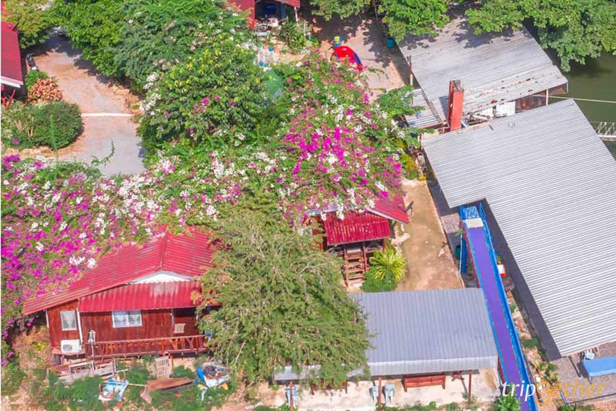 ถ้ามาเป็นกลุ่มใหญ่ บ้านลีลาวดี เป็นอีกตัวเลือกห้องพักที่น่าสนใจเลยล่ะ บ้านหลังใหญ่พักได้ถึง 10 คน มี 2 ห้องนอน 2 ห้องน้ำ ไฮไลท์คือหลังคาที่มีดอกเฟื่องฟ้าสีชมพูบานสะพรั่งปกคลุม ให้บรรยากาศร่มรื่นและสดใสมาก