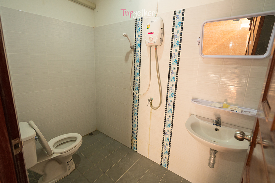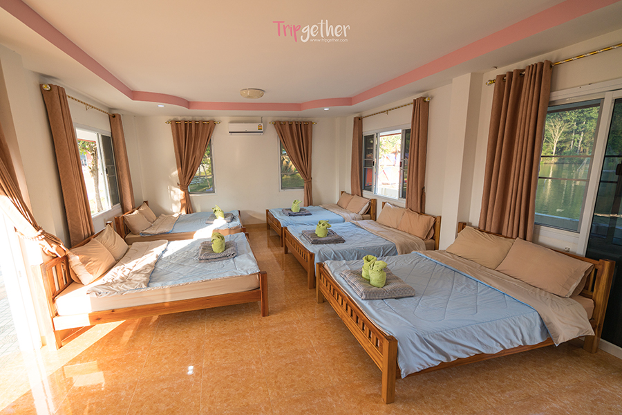 ต่อมาเป็นห้องพักขนาดใหญ่อีกหนึ่งห้อง สามารถพักได้ 10-12 คน มี 2 ห้องน้ำ ด้านหลังเป็นระเบียงติดทะเลสาบ