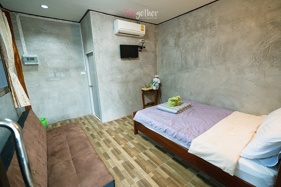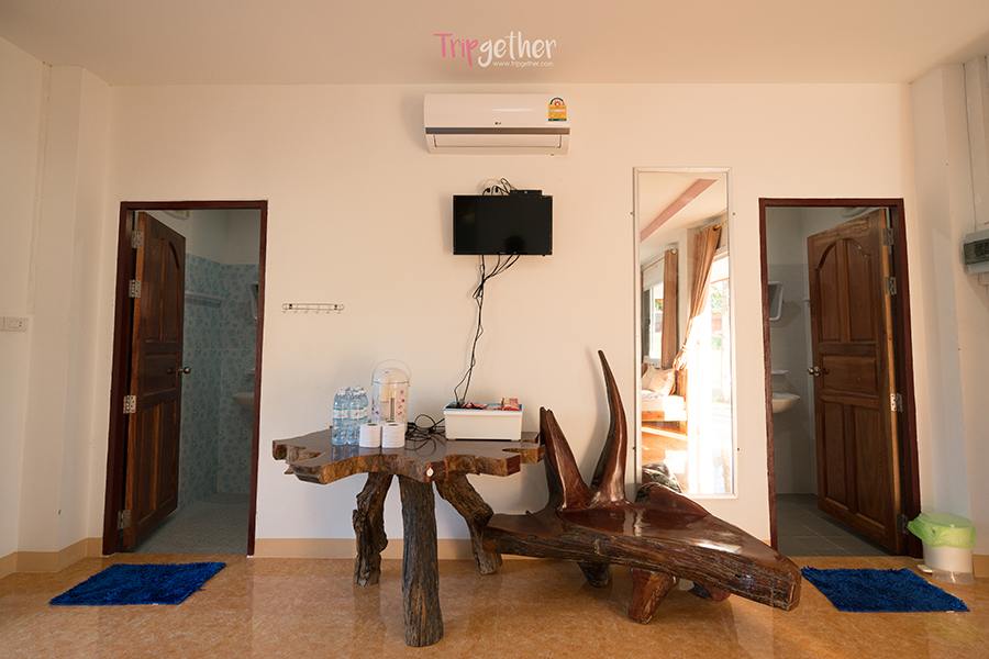 ส่วนใครที่มากันเป็นแก๊งค์ ทางรีสอร์ทก็มีห้อง “รับตะวัน” ห้องพักขนาดใหญ่สำหรับ 8 และ 4 คน ไว้คอยต้อนรับเช่นกัน ไม่ต้องกลัวว่าจะไปเสียงดังรบกวนคนข้างห้อง แถมห้องพักก็กว้าง สบายไปอีก คุณป้าเจ้าของตั้งชื่อห้องนี้ไว้เล่นๆ ว่า ห้องซ่อนความสุข เพราะเป็นห้องที่ตื่นมารับแสงอาทิตย์ตอนเช้าได้ดีที่สุด ใครตื่นเช้าแล้วไม่อยากขึ้นไปเที่ยวภูทอก ก็มายืนรับพลังเริ่มต้นเช้าวันใหม่กับแสงอาทิตย์ที่หน้าห้องนี้ได้เหมือนกัน