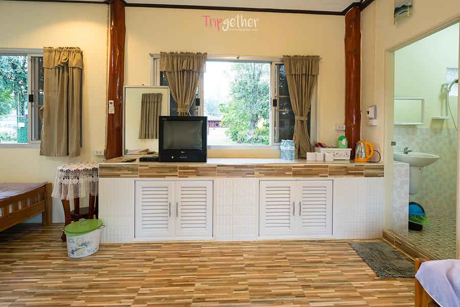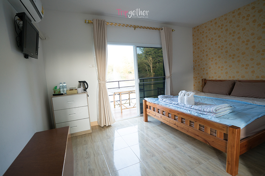 ที่พักที่นี่จะถูกแยกออกเป็น 2 ส่วนหลักๆ คือ ห้องพัก พื้นที่กางเต้นท์ โดยห้องที่เรามาพักครั้งนี้ชื่อว่า ทิวไผ่ไอหมอก เป็นห้องพักสำหรับ 2-3 คน เตียงเดี่ยว มีห้องน้ำในตัว ด้านหน้าเปิดประตูออกไปจะเจอกับต้นไม่ไผ่ที่ช่วยกันลมหนาวจากภูทอกอยู่ด้านหน้า ออกไปที่ระเบียงจะมองเห็นทะเลสาบและนั่งชิลล์ได้ที่นี่ หรือจะไปนั่งเรือปั่นเล่นก็ได้นะ ส่วนเรื่องสิ่งอำนวยความสะดวกด้านในห้องพักก็จัดมาให้อย่างดีเลยทีเดียว