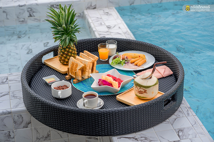 และพิเศษสุดๆ ในมื้อเช้ายังมีบริการอาหาร Floating Breakfast เซ็ตอาหารลอยน้ำสุดเก๋ที่สามารถสั่งได้ทุกห้อง นอกจากจะได้อิ่มท้องแล้ว ยังได้รูปสวยๆ อีกเพียบกับเซ็ตอาหารเช้าชุดนี้อย่างแน่นอน โดยราคาจะอยู่ที่เซ็ตละ 350 บาท สำหรับ 2 คน **แต่พิเศษสุดๆ ในช่วง Soft Opening เฉพาะเดือนตุลาคมนี้ให้คุณได้ฟินกันแบบฟรีๆ ไปเลยถึงห้องพัก (กรุณาสอบถามรายละเอียดเพิ่มเติม)