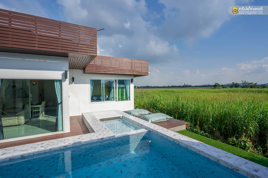 และยังมีมุมพักผ่อนริมสระน้ำธรรมชาติให้สูดอากาศดีๆ กันให้เต็มปอด