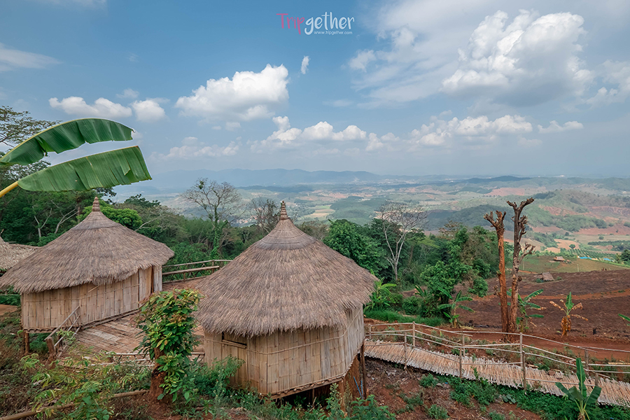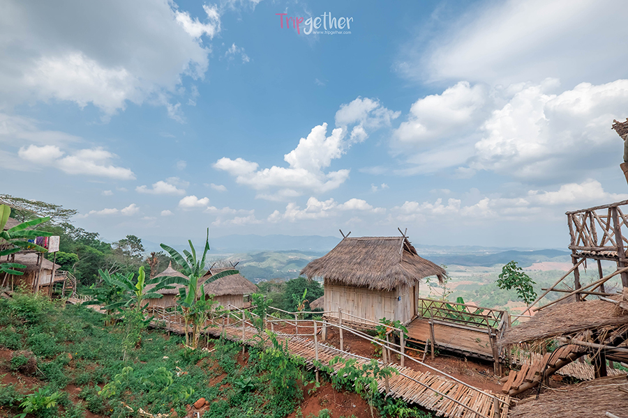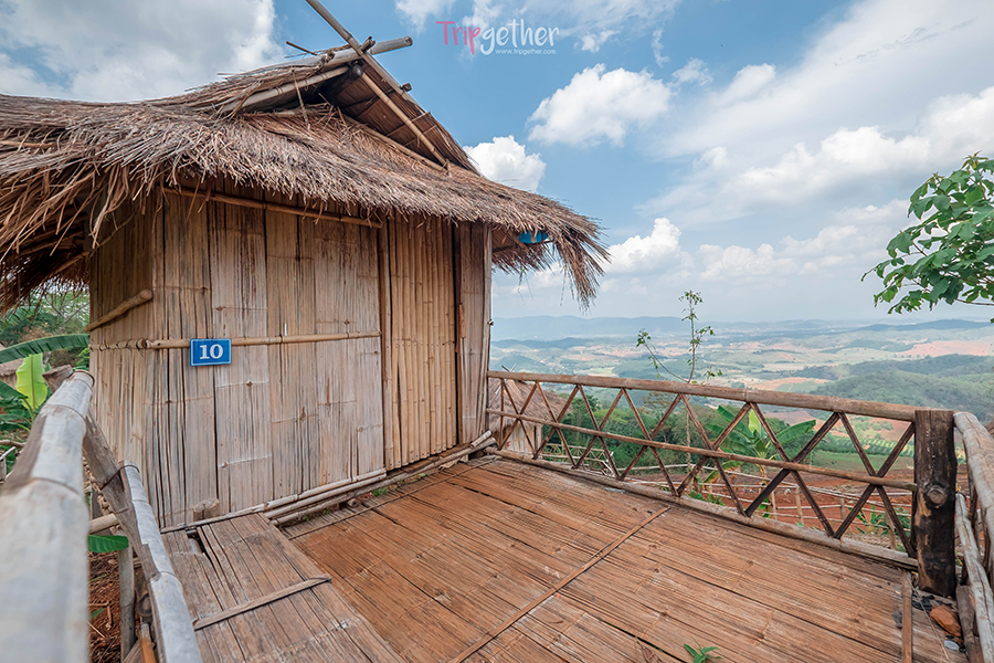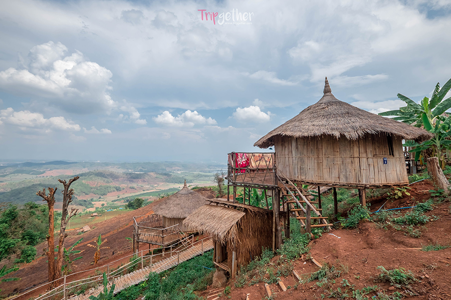 เมื่อเดินทางมาถึงด้านบนจะเป็นจุดชมวิวประเทศเพื่อนบ้าน ที่เราสามารถเดินชมได้แบบ 360 องศาเลยทีเดียว ซึ่งจะเห็นทั้งวิวประเทศลาว และเมียนมาร์ และนอกจากจุดชมวิวสวยๆ แล้วที่นี่ยังมีที่พักโฮมสเตย์ให้บริการนักท่องเที่ยวที่อยากเสพความสุขกันแบบเต็มปอด ด้วยบ้านพักบนเนินเขาแบบส่วนตัว ที่คุณสามารถชมวิวได้จากระเบียงบ้านพัก ซึ่งมีให้บริการหลายหลังด้วยกัน โดยบ้านหลังเล็กพักได้ 2-3 ท่าน (ห้องน้ำรวม) ราคาหลังละ 1500 บาท (รวมอาหารเช้า)