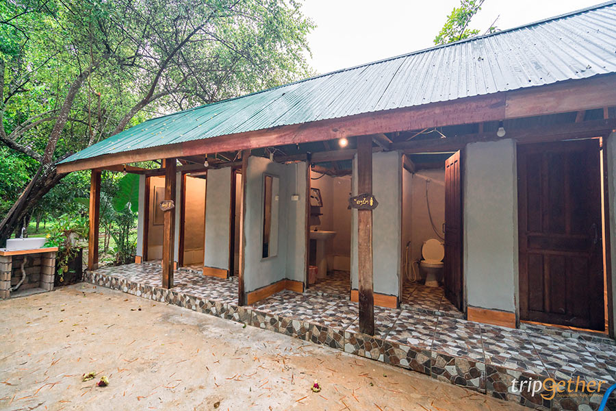 สำหรับห้องน้ำของเรือนแพต้องขึ้นมาใช้ที่ด้านหลัง เป็นห้องน้ำแบบรวม แต่สะอาดน่าใช้มาก มีหลายห้องได้ใช้กันแบบสบายๆ