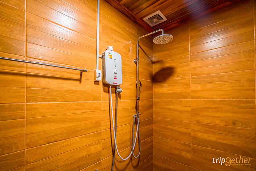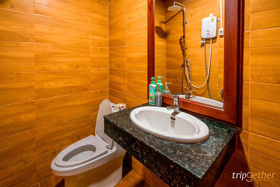 เป็นห้องน้ำในตัวสะอาดน่าใช้ แบ่งโซนเปียกและแห้งเอาไว้ให้พร้อม มีเรนเชาว์เวอร์ให้ได้อาบน้ำกันแบบฟินๆ