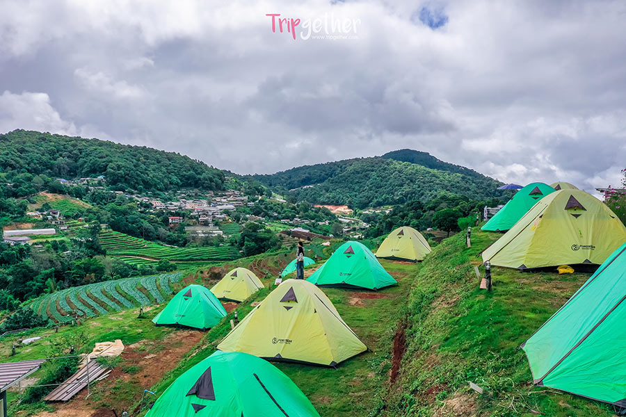 และสุดท้ายเป็น เต็นท์เล็ก กางเรียงรายลดหลั่นกันอยู่บนเนินสนามหญ้าเป็นขั้นบันได