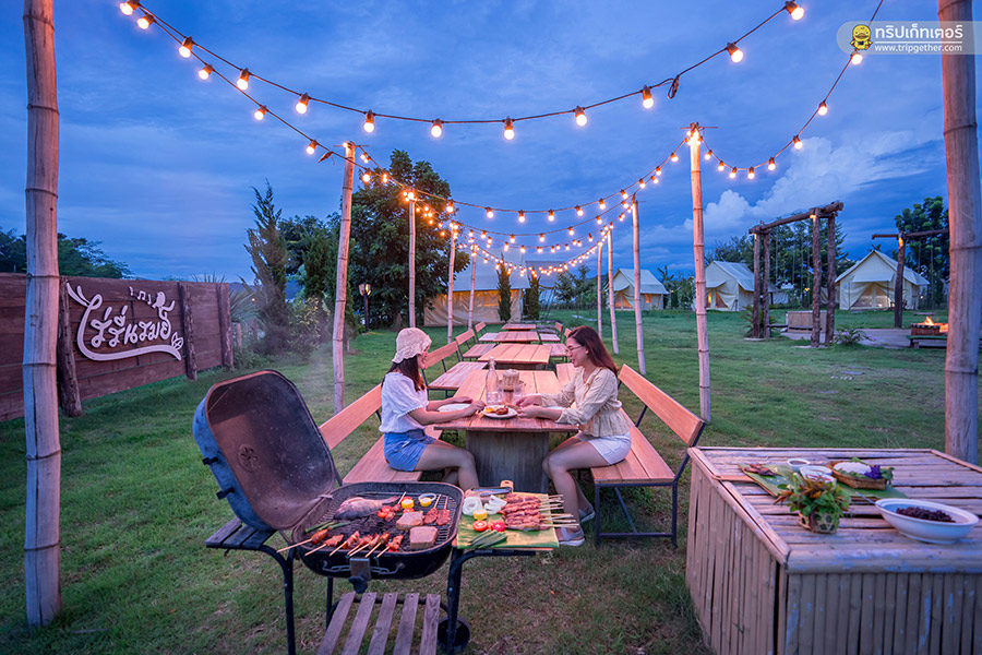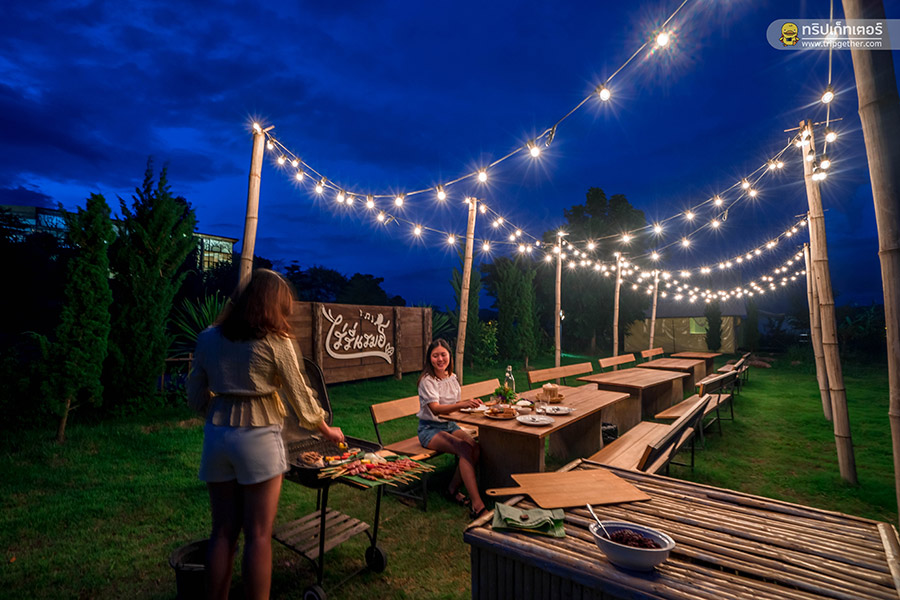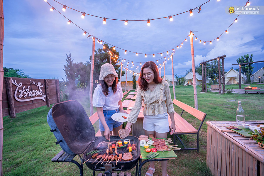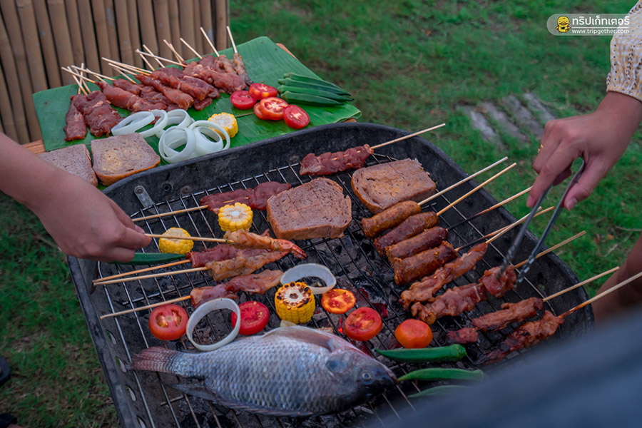 ช่วงเย็นถ้าอยากเปลี่ยนฟีลลิ่งให้เข้ากับบรรยากาศแคมป์ปิ้งที่นี่ก็มีเช็ตบาร์บีคิวให้บริการด้วยเช่นกัน
