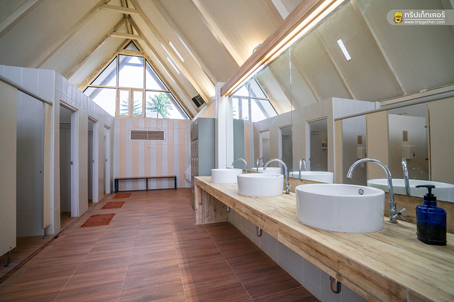 ส่วนห้องน้ำจะอยู่ไม่ไกลจากโซนที่พัก ห้องน้ำจะแยกชายและหญิงอย่างชัดเจน ภายในห้องน้ำยังแบ่งโซนเปียกและแห้งได้เป็นอย่างดี มีสิ่งอำนวยความสะดวกที่ครบครันทีเดียว