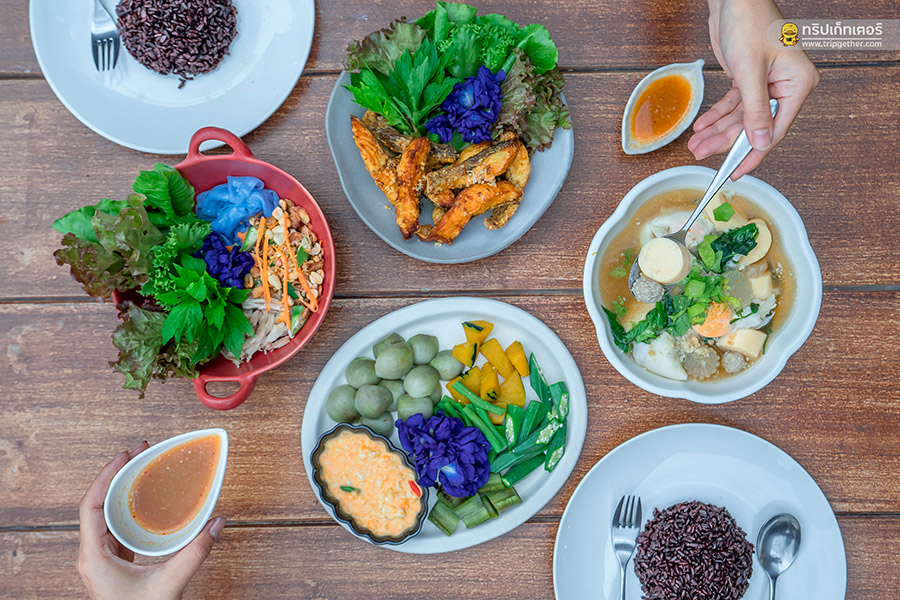 และอีกเซ็ตเมนูแนะนำสำหรับคนรักสุขภาพ ยำก๋วยเตี๋ยวไร่ทุ่ง ปลาทอดขมิ้น น้ำพริกไข่เค็มพร้อมผักต้ม และแกงจืดจิงจูฉ่ายหมูสับไข่น้ำ