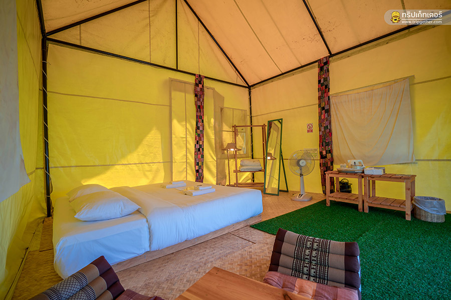 เริ่มต้นที่ห้องพักของที่นี่ มีทั้งหมด 3 ห้อง และเต็นท์ 16 หลัง แบ่งออกเป็น 3 แบบด้วยกันคือ ห้องแอร์ห้องน้ำรวม เต็นท์ห้องน้ำรวม 11 หลัง และเต็นท์ห้องน้ำส่วนตัว 5 หลังด้วยกัน และในวันนี้ทริปเก็ทเตอร์ก็ไม่พลาด ได้เก็บบรรยากาศห้องพักทั้ง 3 แบบมาฝากกัน