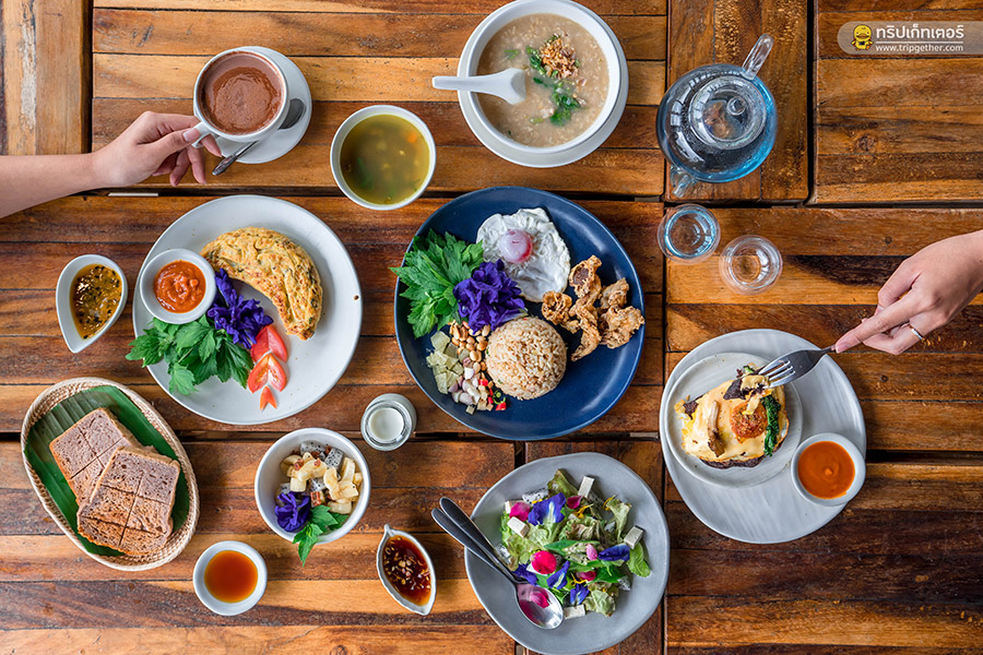 ส่วนมื้อเช้าที่นี่จะเสิร์ฟเป็นเซ็ตเมนูที่ยังคงคอนเซ็ปต์กินดี ด้วยวัตถุดิบที่ดี ที่มาจากการทำเกษตรที่ดี มีเมนูอาหารเช้าให้เลือก 4 รายการด้วยกันคือ วาฟเฟิลไข่ดาวผักย่าง ข้าวผัดปลาร้าเห็ดกรอบ ไข่กวนเห็ดนางฟ้าภูฐาน และข้าวต้มจิงจูฉ่าย เสิร์ฟมาพร้อมกับโยเกิร์ตสดทำเอง ผักสลัด ขนมปังข้าวสีนิลและแยมผลไม้ตามฤดูกาล ให้คุณได้อิ่มอร่อยไปกับอาหารที่เต็มเปี่ยมไปด้วยความใส่ใจ