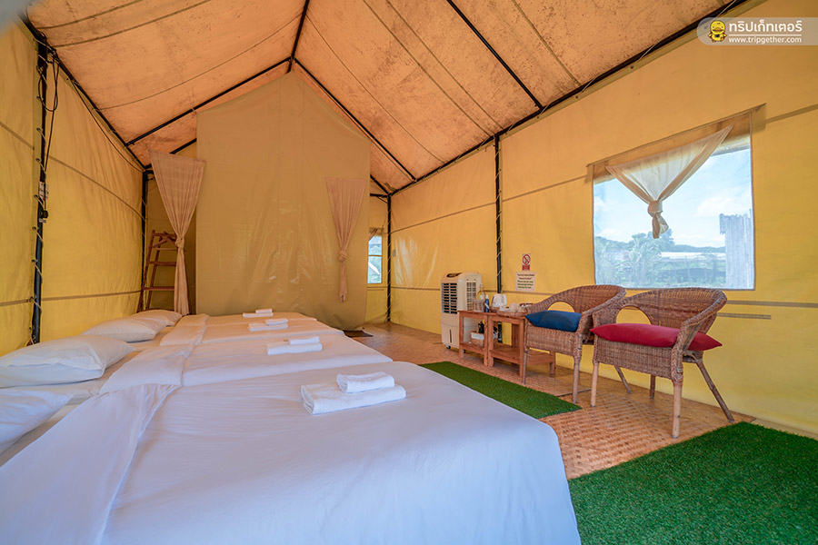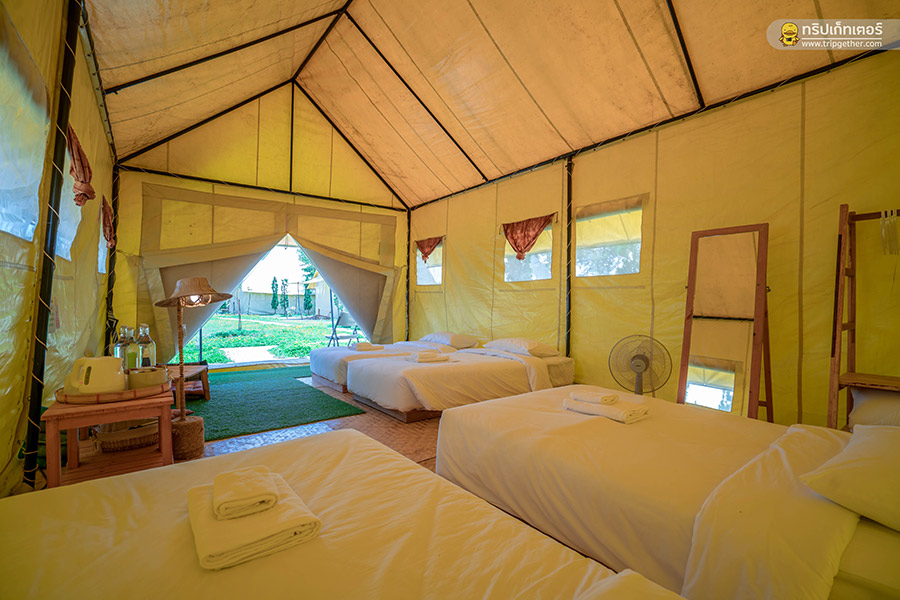 พื้นที่ภายในเต็นท์กว้างขวาง มีห้องพักสามารถรองรับได้ตั้งแต่ 2 คนไปจนถึง 4 คน