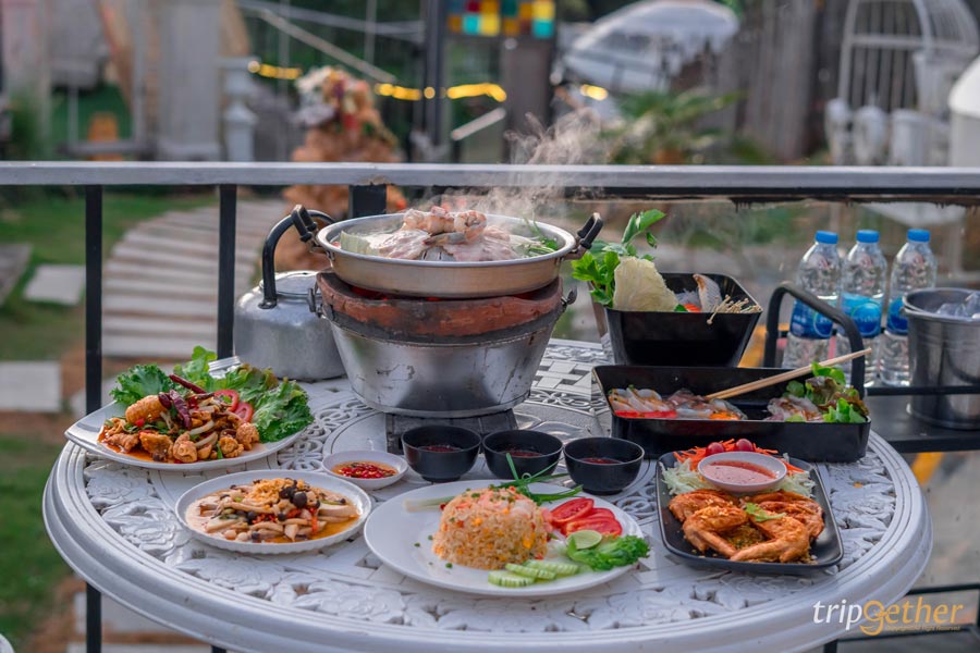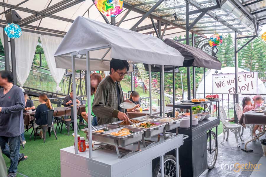 มื้อเย็นก็ไม่ต้องออกไปไหนไกล เพราะที่พักมีโซนร้านอาหารให้บริการมีเมนูให้ฝากท้องแบบอิ่มอร่อยเพียบ! โดยจะเป็นระบบสั่งอาหารล่วงหน้าตอนเช็คอิน สามารถแจ้งเวลาและเมนูที่ต้องการ แล้วมาได้เลย ไม่ต้องนั่งรออาหารนาน