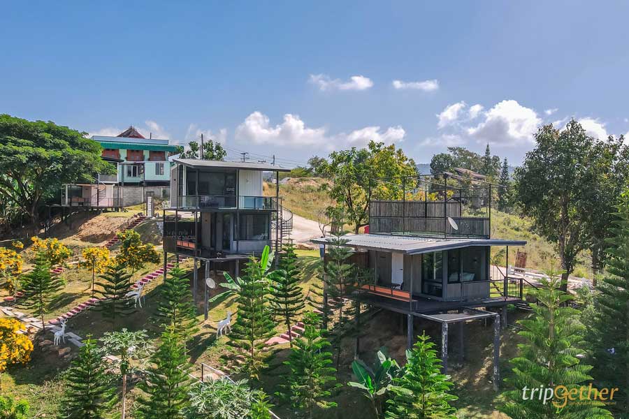 โซนบ้านกล่อง ที่พักสไตล์ตู้คอนเทนเนอร์ ดีไซน์โดดเด่น มีความมินิมอลผสมโมเดิร์น จัดวางบ้านแต่ละหลังให้มีสเปซของตัวเอง ทำให้บรรยากาศเงียบสงบและเป็นส่วนตัวมากๆ