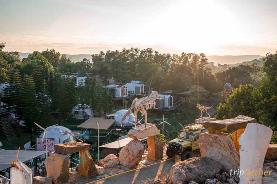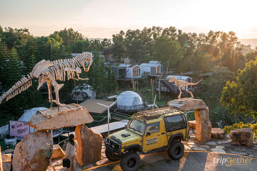 Dome La Deer ที่พักวังน้ำเขียว นอนรถบ้านชมวิวเขา เช็คอินโครงไดโนเสาร์บนสโตนเฮ้นจ์สุดคูล