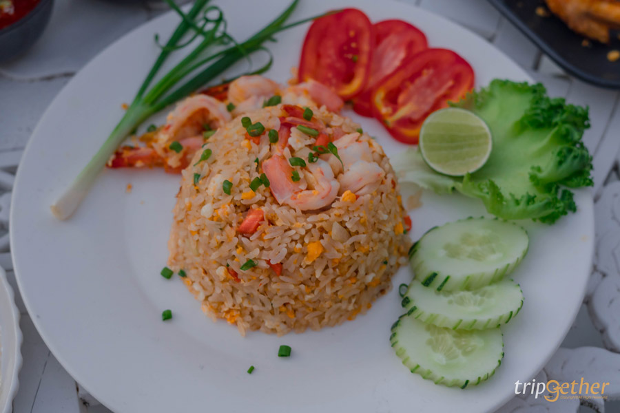 ข้าวผัดกุ้ง ราคา 100 บาท ข้าวร่วน เม็ดสวย กุ้งเด้งตัวโตๆ ให้มาแบบจุกๆ เลยล่ะ