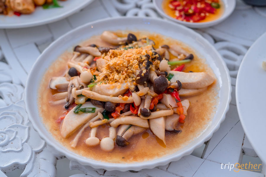 ผัดเห็ดน้ำมันหอย ราคา 120 บาท เห็ดผัดมาหอมๆ รสกลมกล่อม กินง่าย ถูกใจสายสุขภาพ