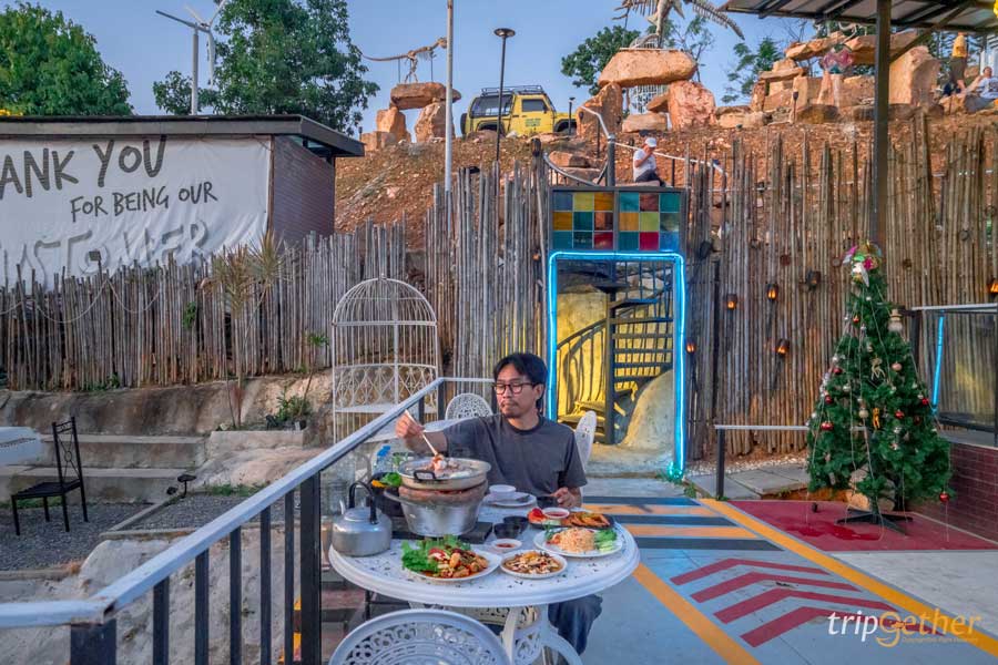 สายปิ้งย่างแนะนำเลย ชุดหมูกระทะ ราคา 400 บาท ที่เหมาะมากกับบรรยากาศอากาศเย็นๆ บนเขา เนื้อหมูหมักมานุ่มกำลังดี ย่างบนเตาร้อนๆ กลิ่นหอมลอยมาเตะจมูก ยิ่งได้ซดน้ำซุปร้อนๆ ไปพร้อมกัน บอกเลยว่าฟิน