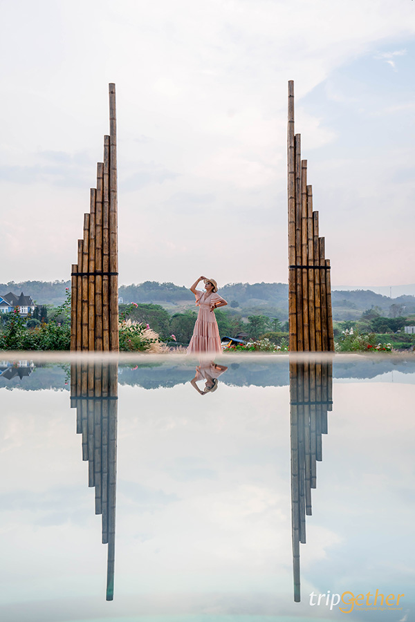 และมุมที่เรียกได้ว่าเป็นไฮไลท์เลยก็คือมุมซุ้มประตูสะท้อนน้ำสไตล์บาหลี รับรองว่ามุมนี้ได้ภาพสวยแปลกตาอย่างแน่นอน