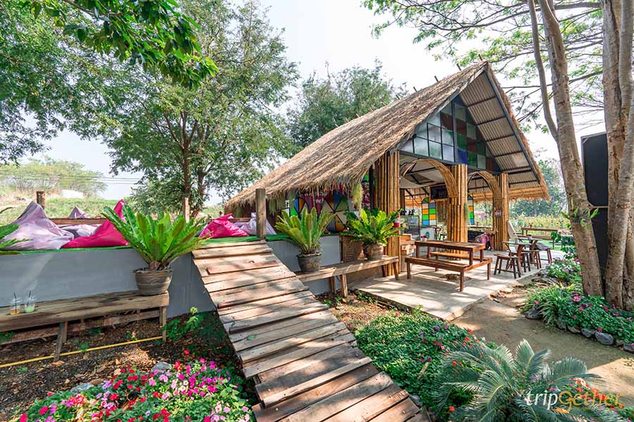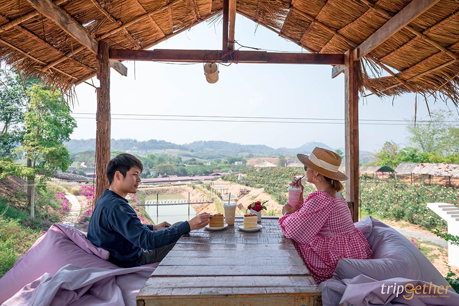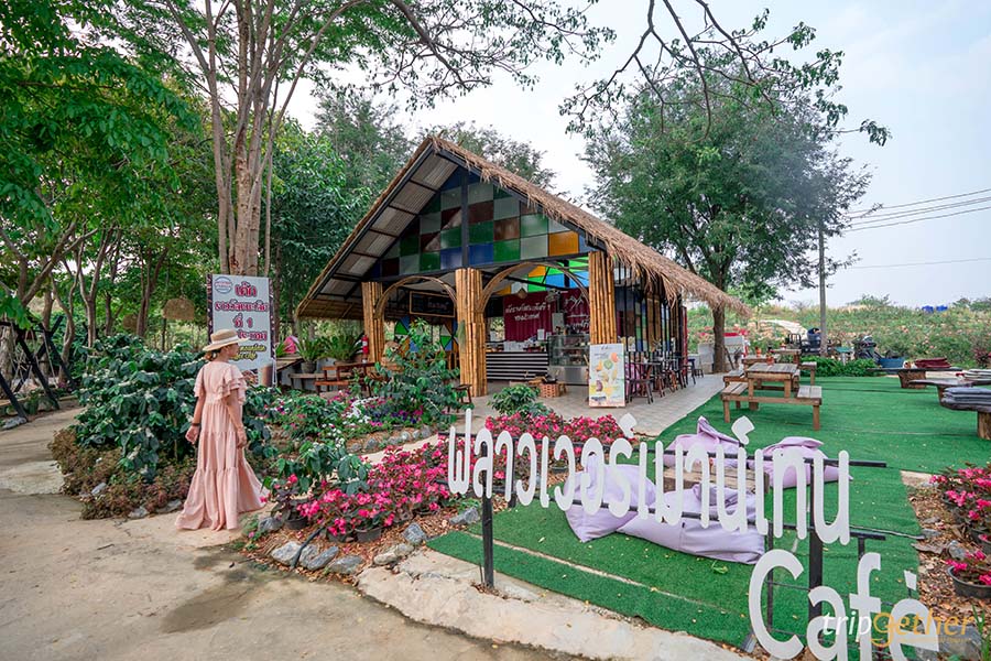 มาเริ่มต้นกันที่โซนของคาเฟ่ที่ตั้งอยู่บนภูเขาดอกไม้ ที่เรียกได้ว่าเป็นไฮไลท์ของที่นี่เลยก็ว่าได้ ตัวคาเฟ่ตกแต่งด้วยไม้และวัสดุที่จากทำชาติ ให้ฟีลลิ่งความเป็นบาหลี นอกจากความสวยงามและบรรยากาศดี ของคาเฟ่นี้แล้ว ยังได้รับรางวัลเค้กชนะเลิศอันดับ 1 ของประเทศที่มาการันตรีความอร่อยอีกด้วย