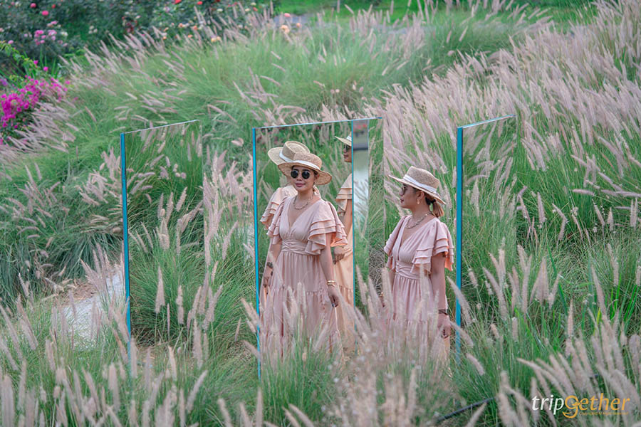 หรือจะถ่ายกับมุมกระจกสะท้อนกลางทุ่งหญ้าสไตล์เกาหลีที่นี่ก็มี