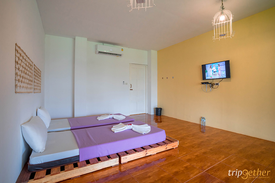 และ ห้องพักที่นอนเดี่ยว เหมาะสำหรับแก๊งค์เพื่อนที่ต้องการความสะดวกสบายในการพักผ่อน ภายในห้องพักยังคงตกแต่งด้วยสไตล์เรียบง่ายมาพร้อมสิ่งอำนวยความสะดวกทั้ง ทีวี เครื่องปรับอากาศ ผ้าขนหนูและน้ำดื่ม เช่นเดียวกัน