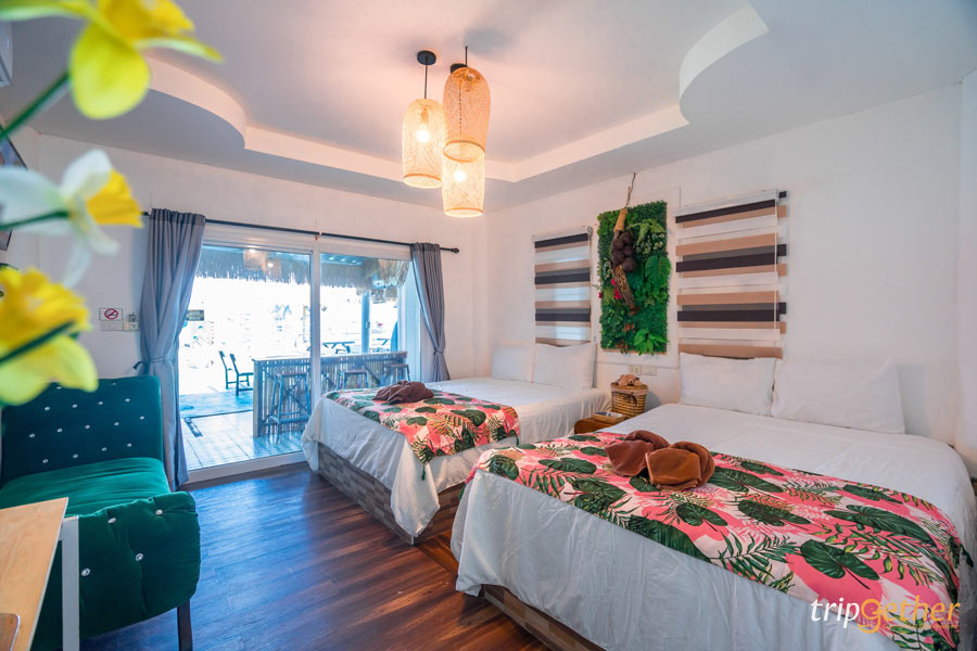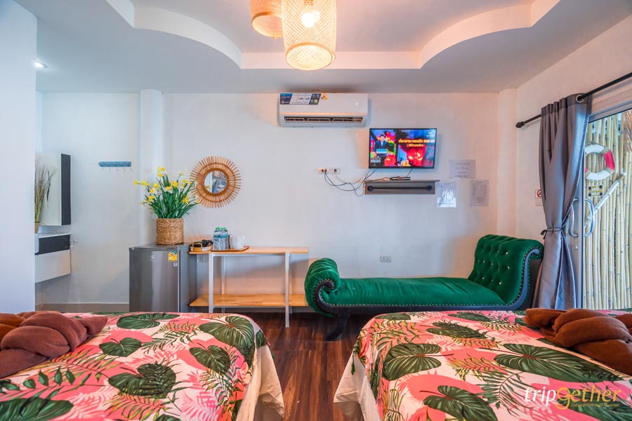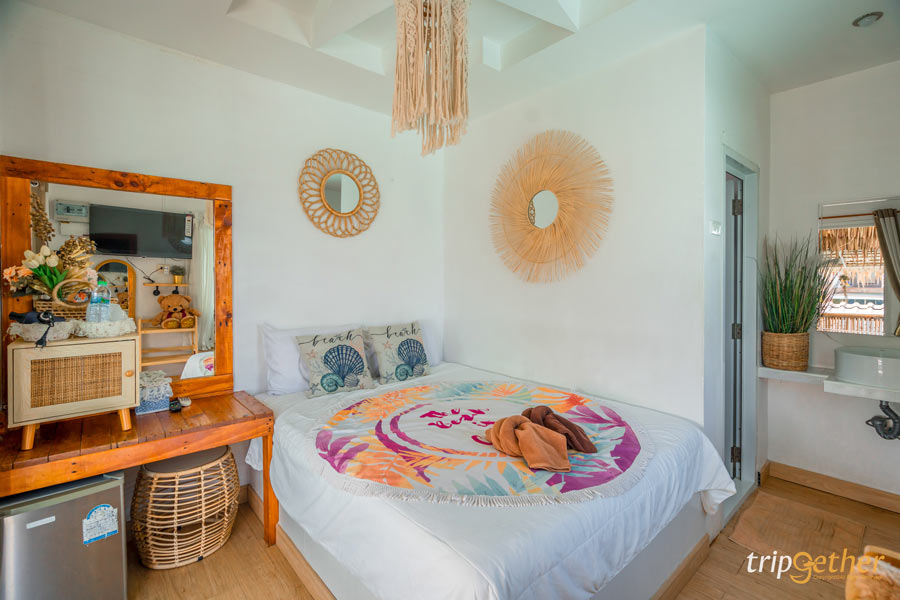 ห้องพักสำหรับ 2 คน เหมาะกับคู่รักหรือเพื่อนซี้ ห้องพักดีไซน์โมเดิร์น ตกแต่งน่ารัก เรียบง่าย มีสิ่งอำนวยความสะดวกครบ ถือว่าเป็นห้องที่สวยน่านอนและเหมาะกับการถ่ายรูปทำคอนเทนต์มาก นอนฟังเสียงคลื่นเบาๆ ได้ฟีลโรแมนติกสุดๆ