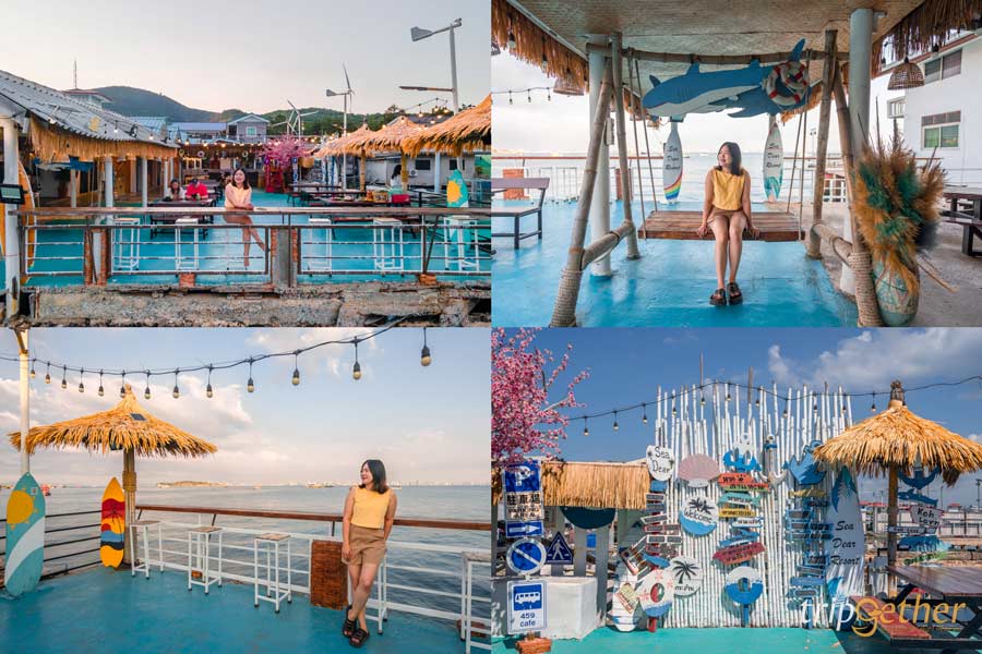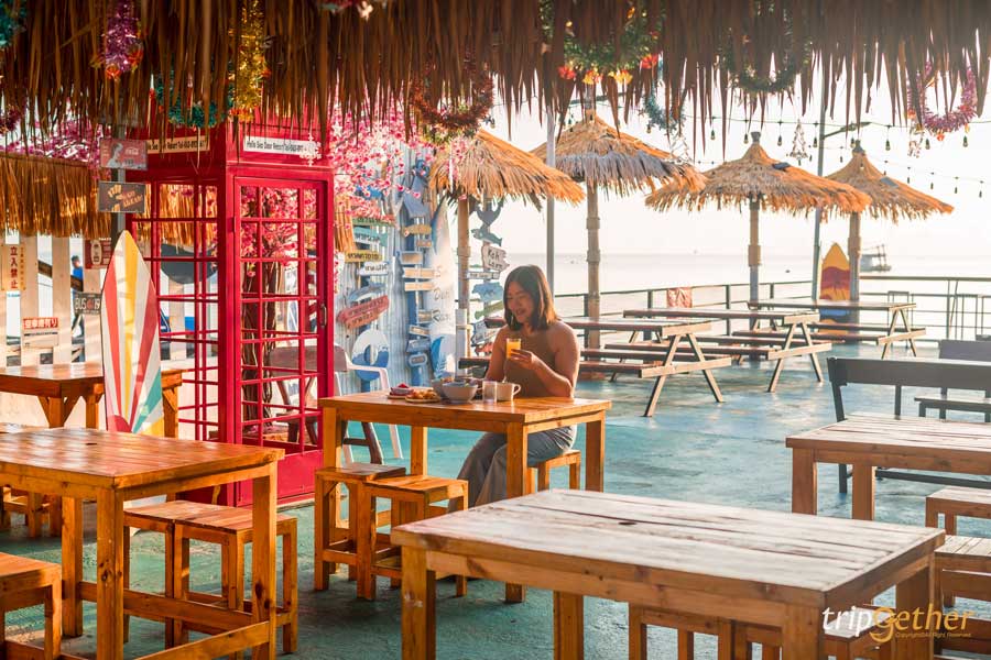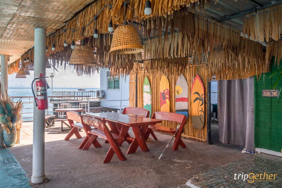 และที่สำคัญคือมุมถ่ายรูปเยอะมาก! ทั้งกำแพงเซิร์ฟบอร์ด บาร์ที่หันหน้าเข้าหาทะเล มุมแสงช่วงเย็นคือสวยเท่มาก มีเสน่ห์สุดๆ ใครสายคาเฟ่ สายคอนเทนต์ รับรองได้รูปลงโซเชียลแบบรัวๆ แน่นอน