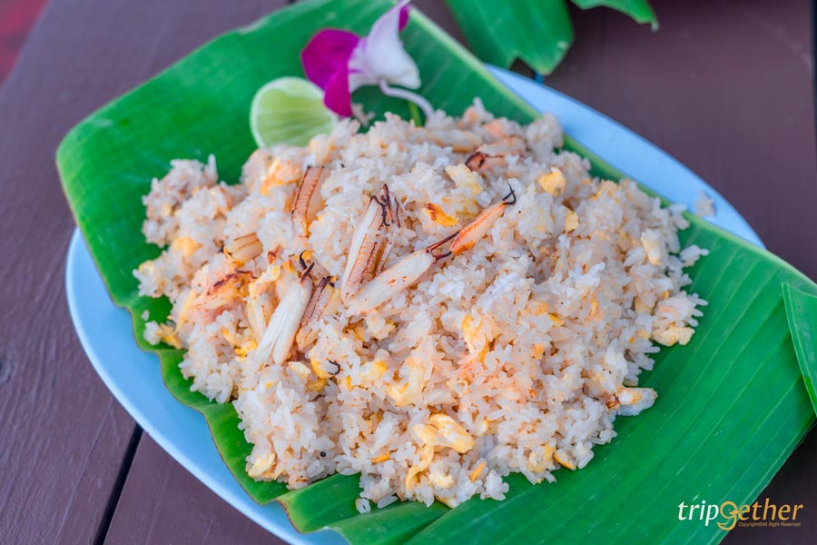ข้าวผัดปู ข้าวผัดหอมกระทะ เม็ดข้าวร่วนสวย ผัดมากับเนื้อปูก้อนๆ ให้มาแบบไม่หวง รสชาติกลมกล่อม
