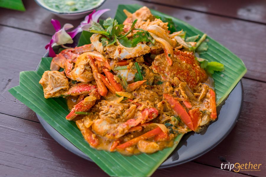 ปูผัดผงกระหรี่ ปูสดเนื้อหวาน ผัดมากับผงกะหรี่หอมๆ ซอสข้นกำลังดี รสชาติกลมกล่อม หวานมัน เค็มนิดๆ ไข่เคลือบเนื้อปูทุกชิ้น กินกับข้าวสวยร้อนๆ บอกเลยว่าตักเพลินจนไม่รู้ตัว