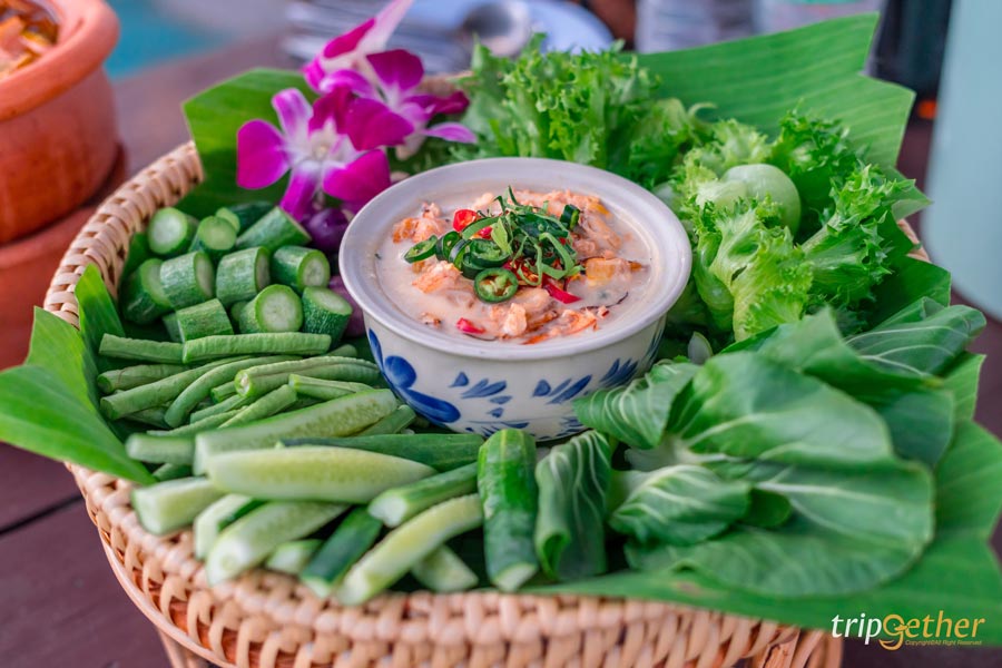ชุดน้ำพริกปูหลน น้ำพริกปูหลนรสละมุน หอมกะทิ เนื้อปูเป็นชิ้นๆ กินคู่กับผักสดกรอบๆ เป็นเมนูที่ช่วยบาลานซ์รสชาติทั้งมื้อได้ลงตัวสุดๆ