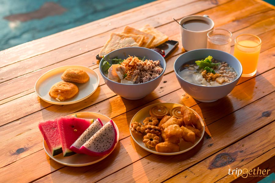 และที่สำคัญ ไม่ว่าจะพักห้องไหน ที่นี่จัดให้แบบคุ้มมาก กับ อาหารเช้าแบบบุฟเฟต์ รวมให้แบบไม่ต้องจ่ายเพิ่ม มีทั้งข้าวต้มหอมๆ ซดร้อนๆ ยามเช้าฟินมาก คุกกี้ ปาท่องโก๋ เครื่องดื่ม ชา กาแฟ ผลไม้สดๆ มีครบ