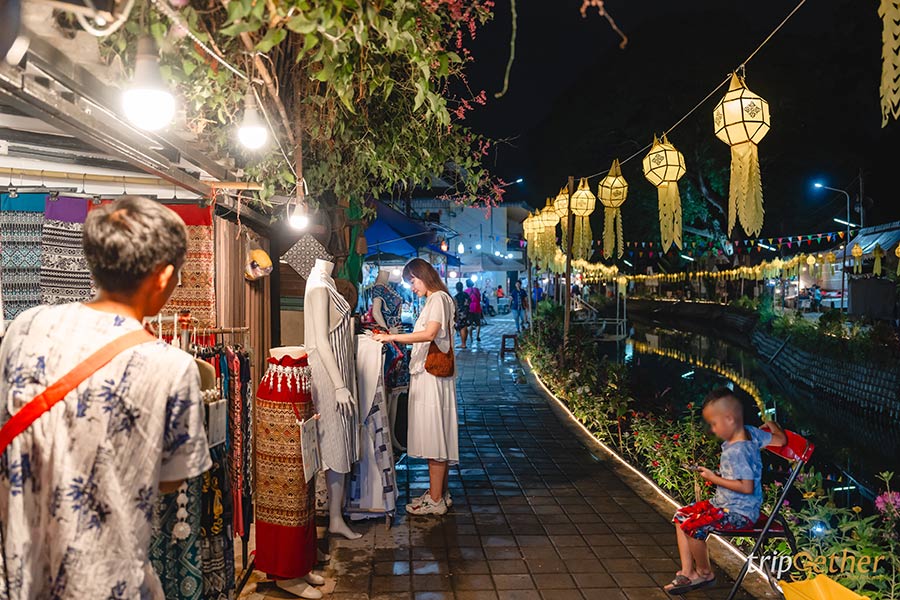 ความพิเศษของคลองแม่ข่าคือการตกแต่งที่เปลี่ยนไปตามเทศกาล อย่างถ้ามาช่วงสิ้นปีก็มีโคมยี่เป็งประดับอย่างสวยงาม ให้กลิ่นอายการเฉลิมฉลองสุดๆ แต่ถึงไม่ได้มาในช่วงเทศกาล บรรยากาศของคลองแม่ข่าก็ยังคงครึกครื้น มีไฟประดับจากทางร้านค้าและตลอดทางเดิน