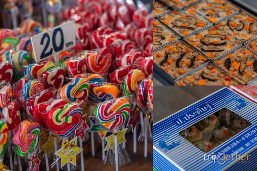 นอกจากนี้ก็ยังมีของฝาก ของสะสม เช่น เหรียญเก่า ของเล่นโบราณ สมุดสะสมแสตมป์ และสินค้าทำมือจากชาวบ้านให้ได้ซื้อติดไม้ติดมือกลับไปเป็นที่ระลึกอีกด้วย