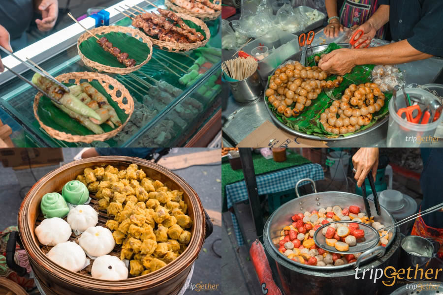 ในส่วนของของกินบอกเลยว่าเพียบ!! ถ้าคิดไม่ออกว่าจะกินอะไรไปเดินถนนคนเดินเชียงรายคือรู้เรื่องเลย มีของกินเล่นให้เลือกตลอดทางพริกหยวกยัดไส้หมูสับแน่นๆ ไส้กรอกลูกกลมๆ~ อร่อยพอดีคำ ขนมจีบซาลาเปา ขนมจีนน้ำเงี๊ยวรสชาติเข้มข้น เมนูเด็ดของภาคเหนือ